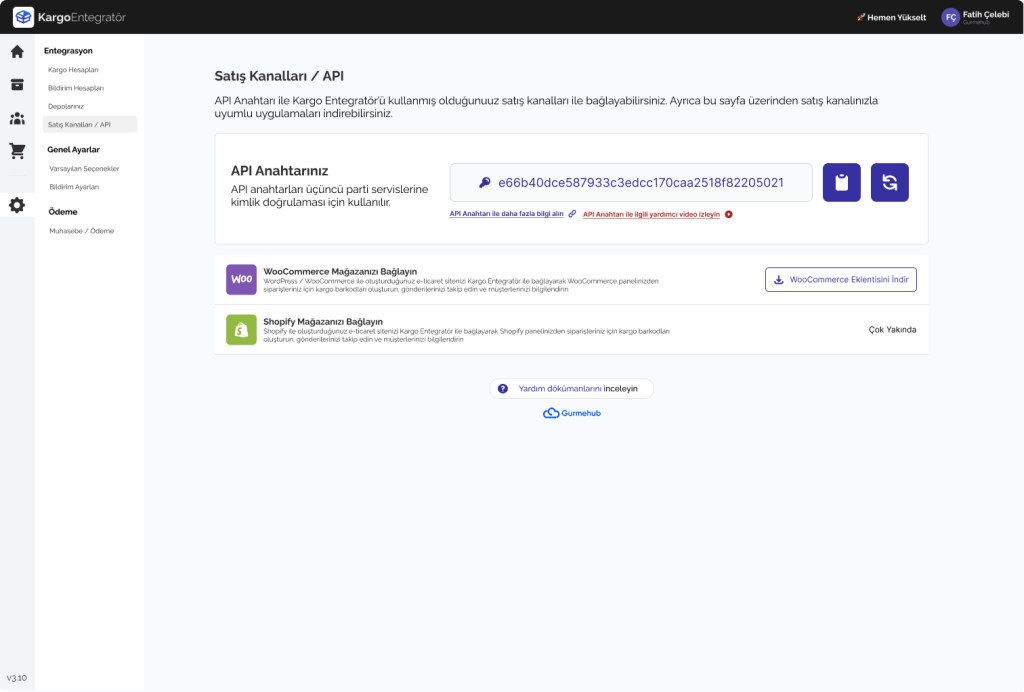 API Anahtarınızı kopyaladıktan sonra eklentinin Ayarlar > Bağlantılar sayfası üzerinden kopyaladığınız API anahtarını girin ve ayarlarınızı kaydedin. Artık kargo firmaları ile entegre olabilir ve WooCommerce mağazanız üzerinden kargo gönderimleri sağlayabilirsiniz.