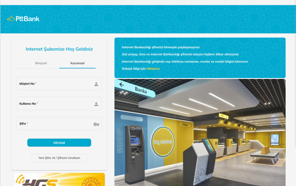 1-) https://pttbank.ptt.gov.tr/pttweb/#/pages/auth/login-2 adresine giriş yaptığınız kullanıcı adı ve şifre ile kargo hesabınızı ekleyebilirsiniz. Öncesinde servis kullanım iznini kargo anlaşmasını sağladığınız şube ile görüşerek yetkilendirmeniz gerekiyor.