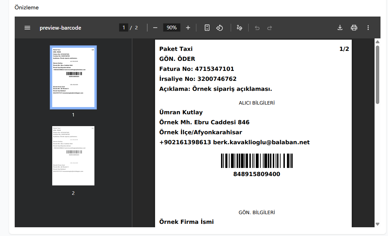 Bu sayfa, kargo etiketlerinizi ve barkodlarınızı operasyonel ihtiyaçlarınıza göre özelleştirmenize olanak tanır. Barkod tasarımlarınızı istediğiniz boyut ve stilde PDF olarak kaydedebilir veya doğrudan yazdırabilirsiniz.